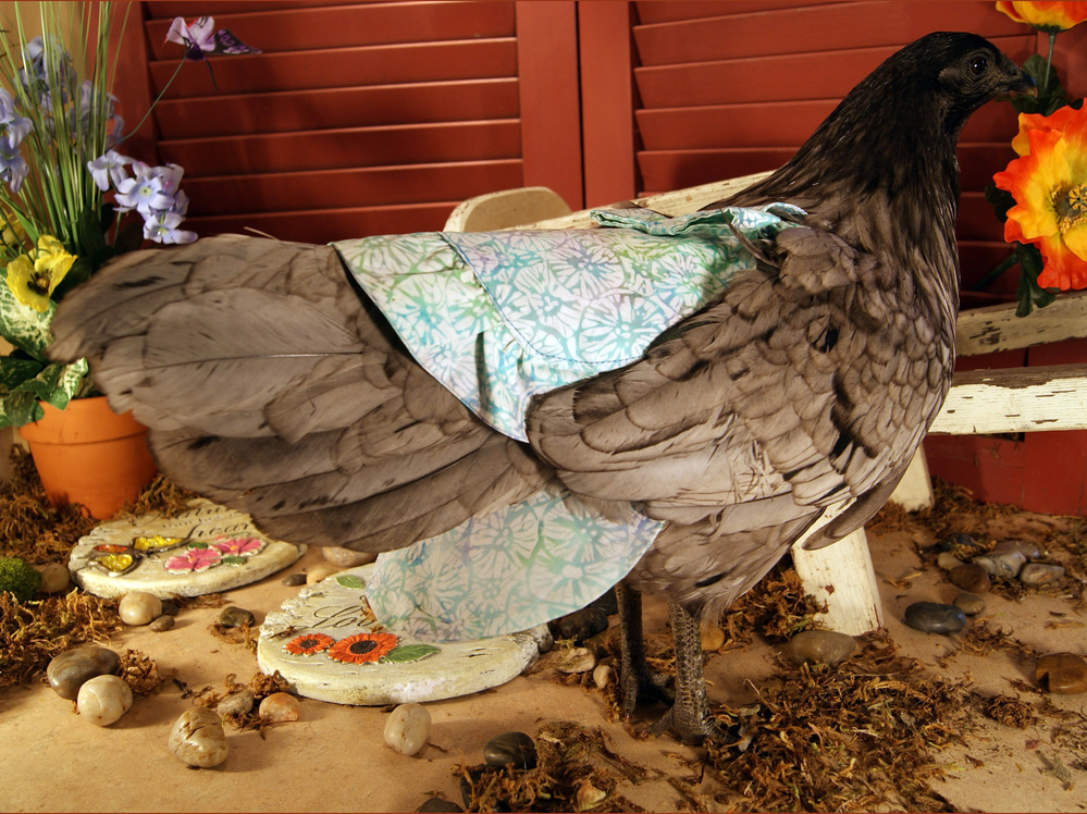 Enlarge image i "A lot of my customers use them as dresses," Julie Baker, of Claremont, N.H., says about the poultry diapers she sells online. "They want their chickens to look really cute."
